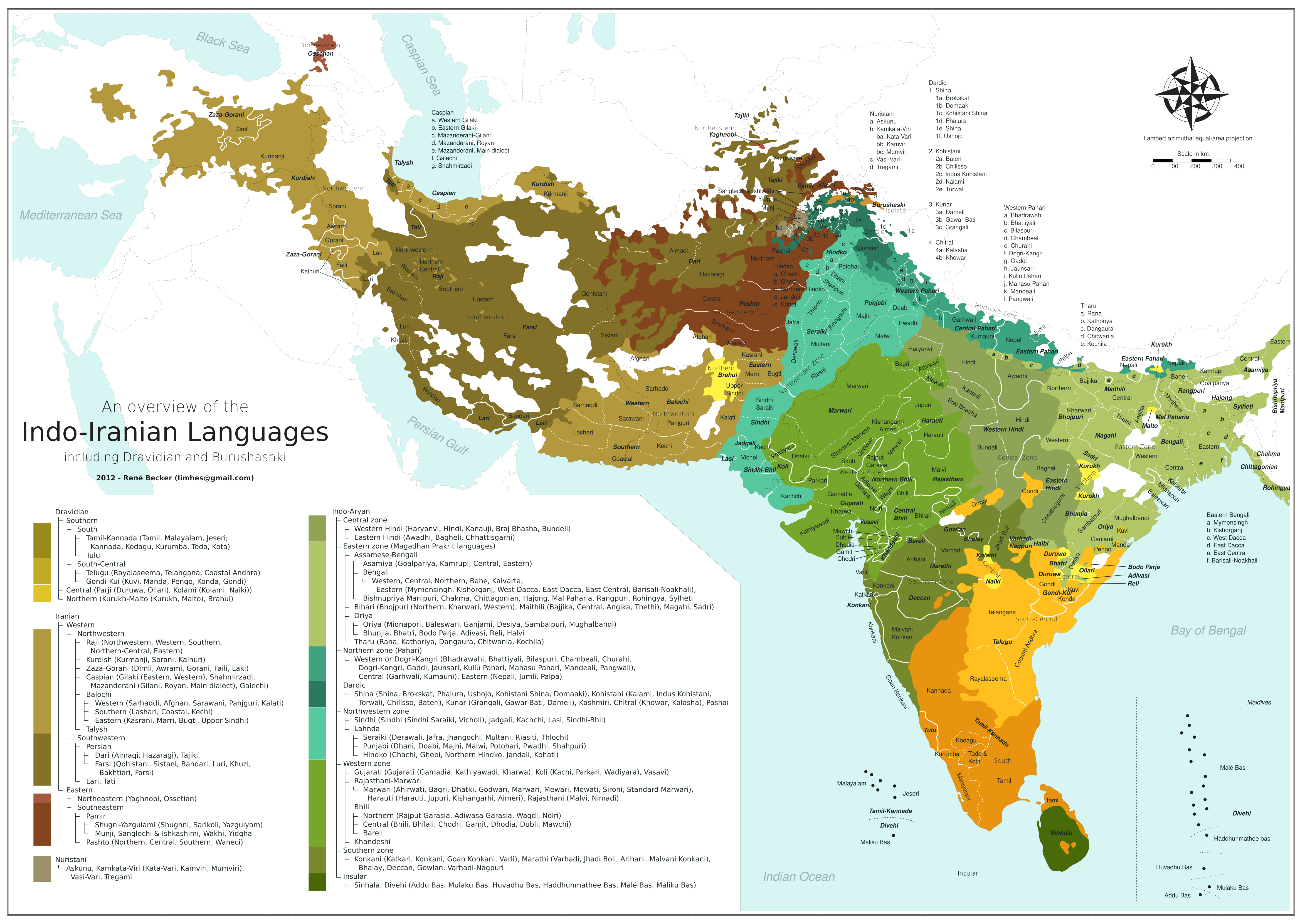 The second and last map in made in this way was a map of the Indo-Iranian languages. This way, the Indo-European languages had all been mapped out and that seemed like a nice accomplishment. I had learned from previous mistakes, and started from an existing vector map. I also made better use of some Inkscape functionalities that saved a lot of time. This was also the first and only map I ever "published", albeit on Reddit. Comments were generally really nice and people liked the looks of it. But, since the map included the Kurdish language, the discussion turned policital and that was a good indication for me that I rather keep this stuff to myself. Luckily you cannot comment on this page :).
